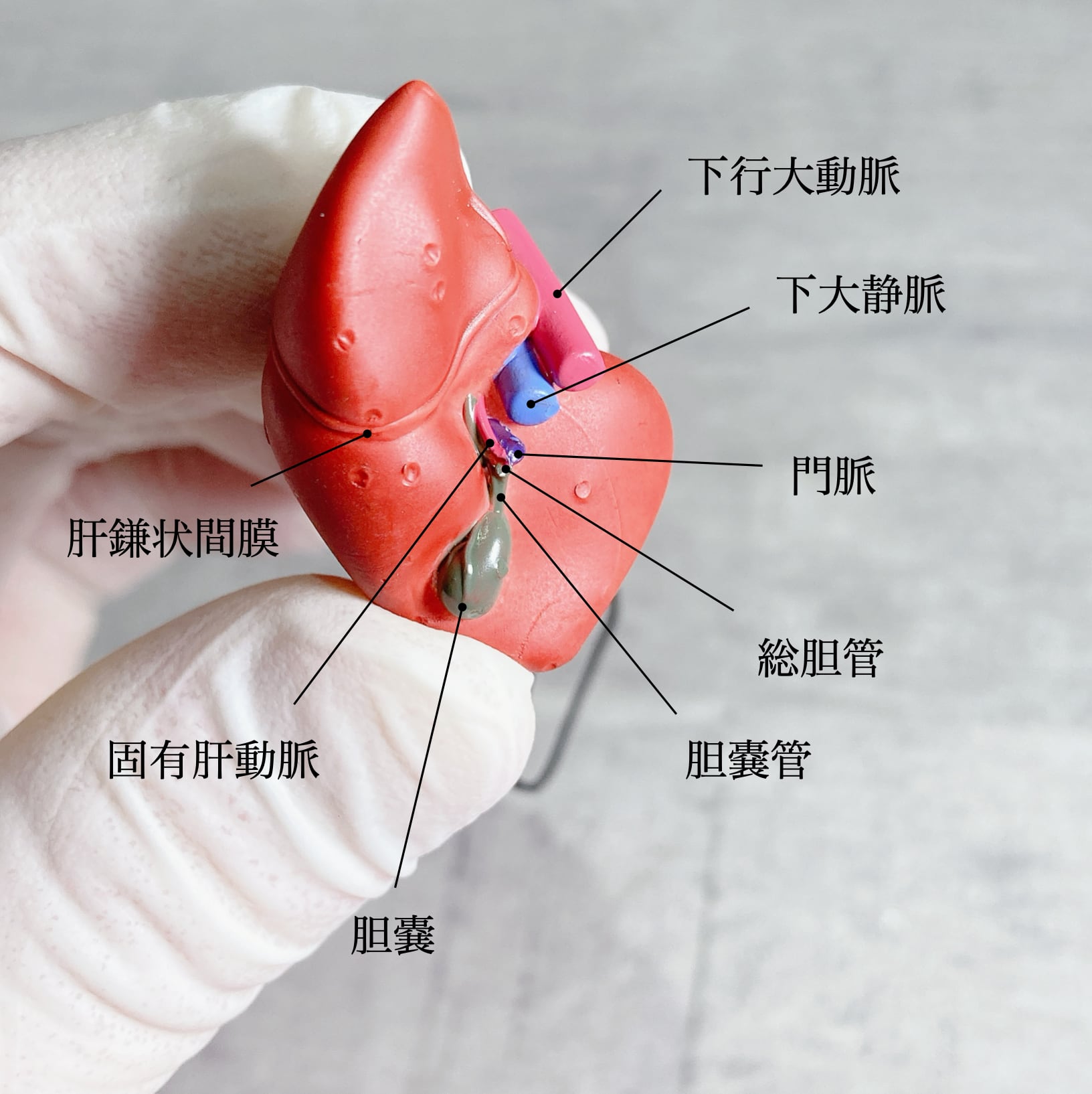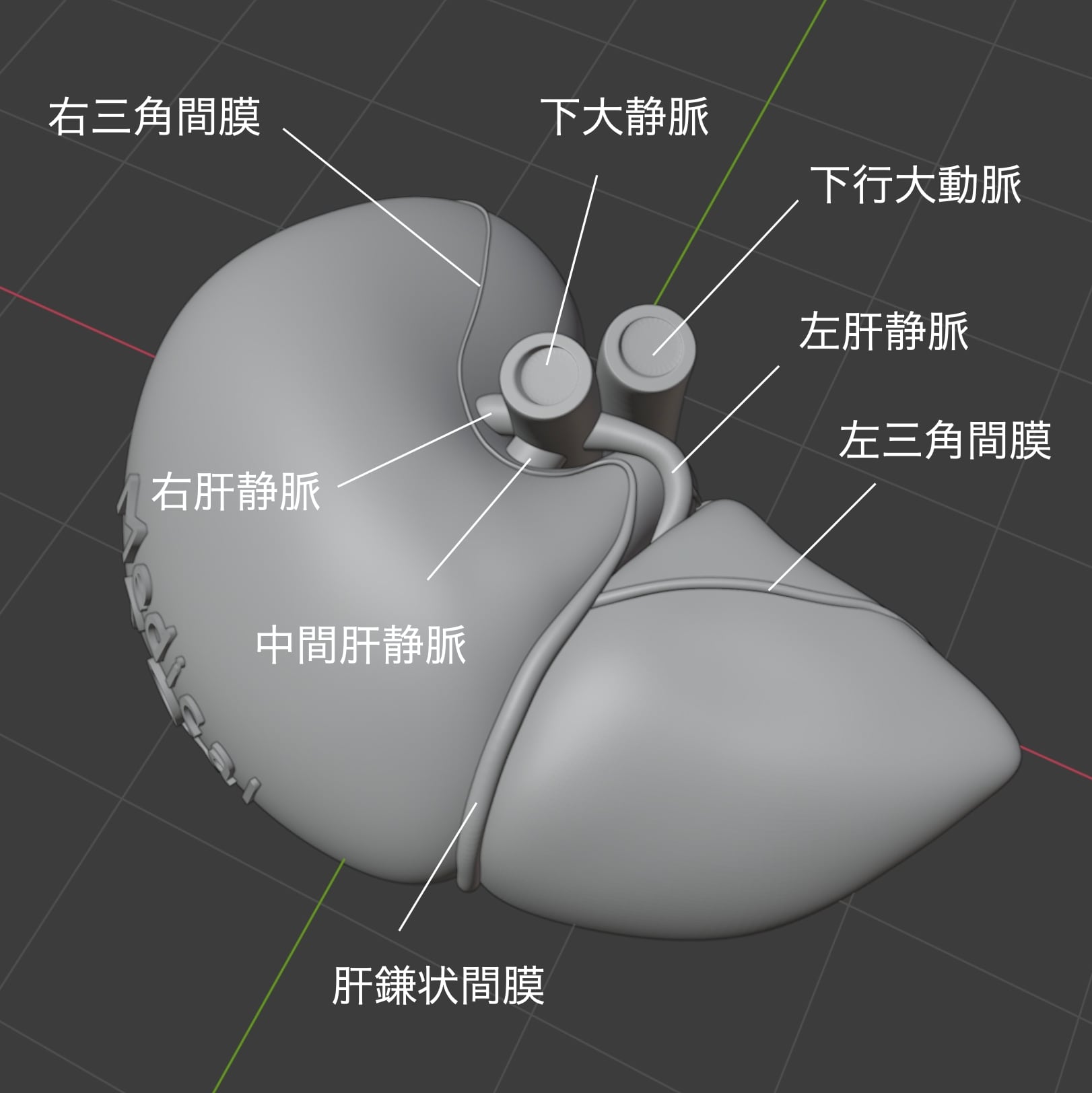 肝臓にはさまざまな名称に区分けされた膜がはっています。肝鎌状間膜、肝冠状間膜、三角間膜など細くて超細かい膜もリアルに表現するのに苦労しましたが、これを付けたお陰で、肝臓らしさにより味が出たと思います。