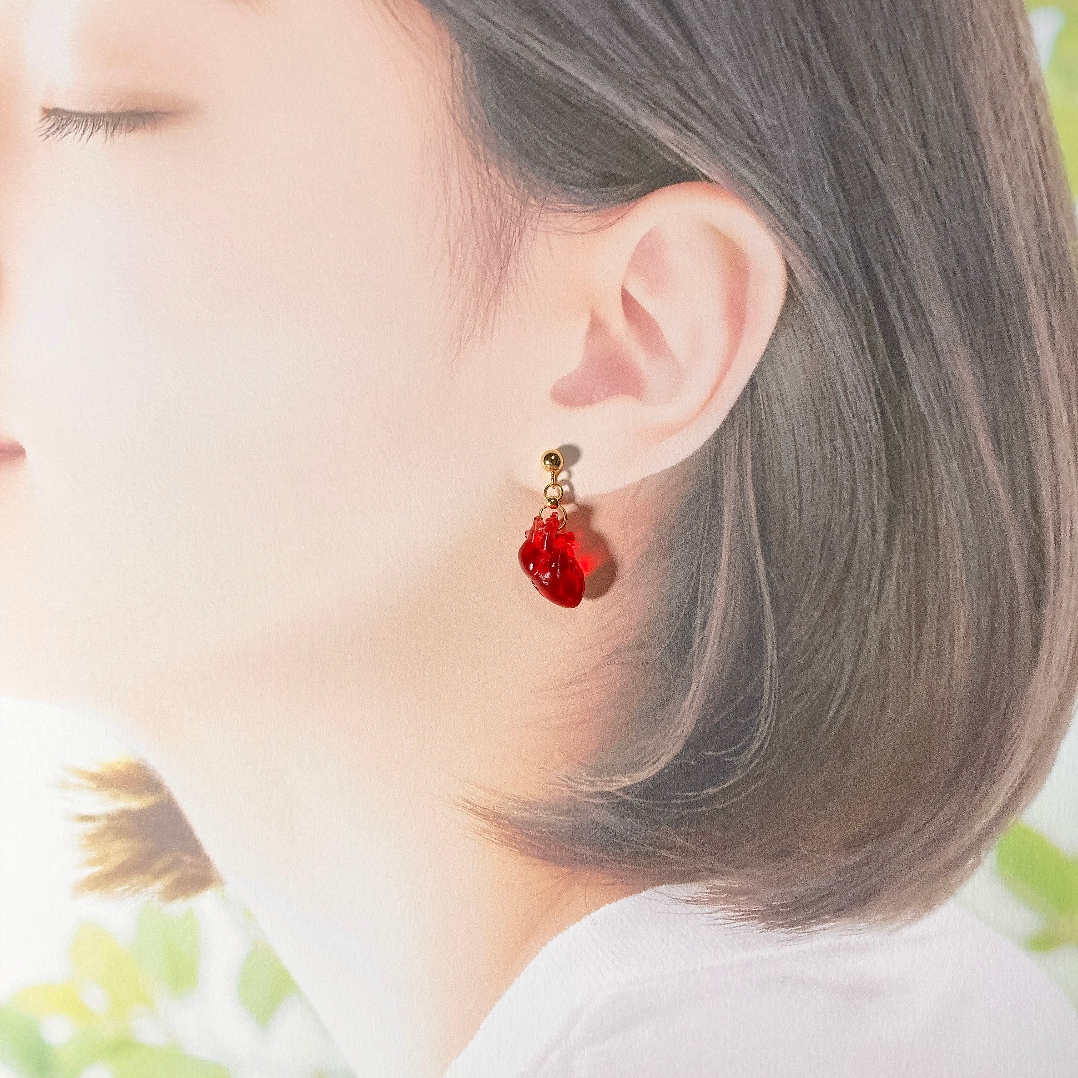 小さいので、関係者でなければなかなか心臓と気づいてもらえないかも知れません!なにか綺麗な宝石のついたピアスをしているのかなと言うくらいです。逆に言えば、サラッと付けていても全く不自然ではないので、シチュエーションを選ばず様々なシーンに合わせて付けていただけるかと思います(^^)ピアスの金具部分の素材も、金属アレルギーの方にも対応した厳選したものを使用しています。こちらは詳しくは下記の【こだわったポイント】をご参照ください。