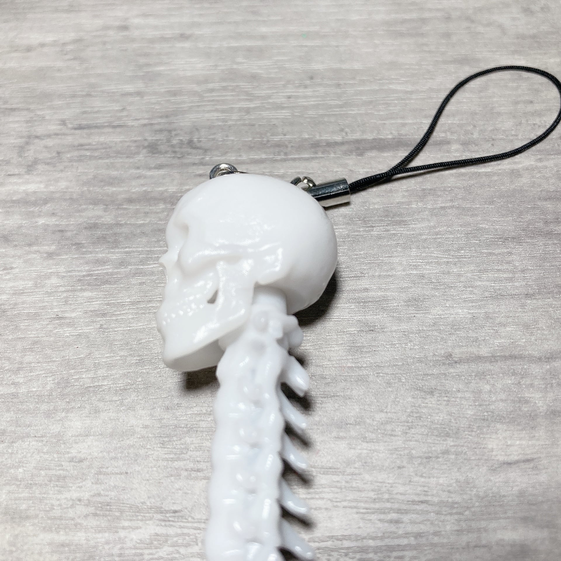 リアルすぎる脊椎のボールペン専用の「リアルすぎる頭蓋骨型キャップ」を作成しました!頭蓋骨の構造を解剖学書を参考にリアルにモデリングし、底部にボールペンが入る穴を開けることで、脊椎ボールペンのキャップとして使用できます。脊椎ボールペンと組み合わせることで、頭から尾骨までの骨格が完成します。また頭蓋骨の頭頂部にはストラップ紐を掛けていますので、ペンなしでそのままでも飾ることができます(不要な場合はストラップは外してOK)。リアルすぎる頭蓋骨のボールペンのキャップとして、またはストラップ単体として、いかがでしょうか。(^^)