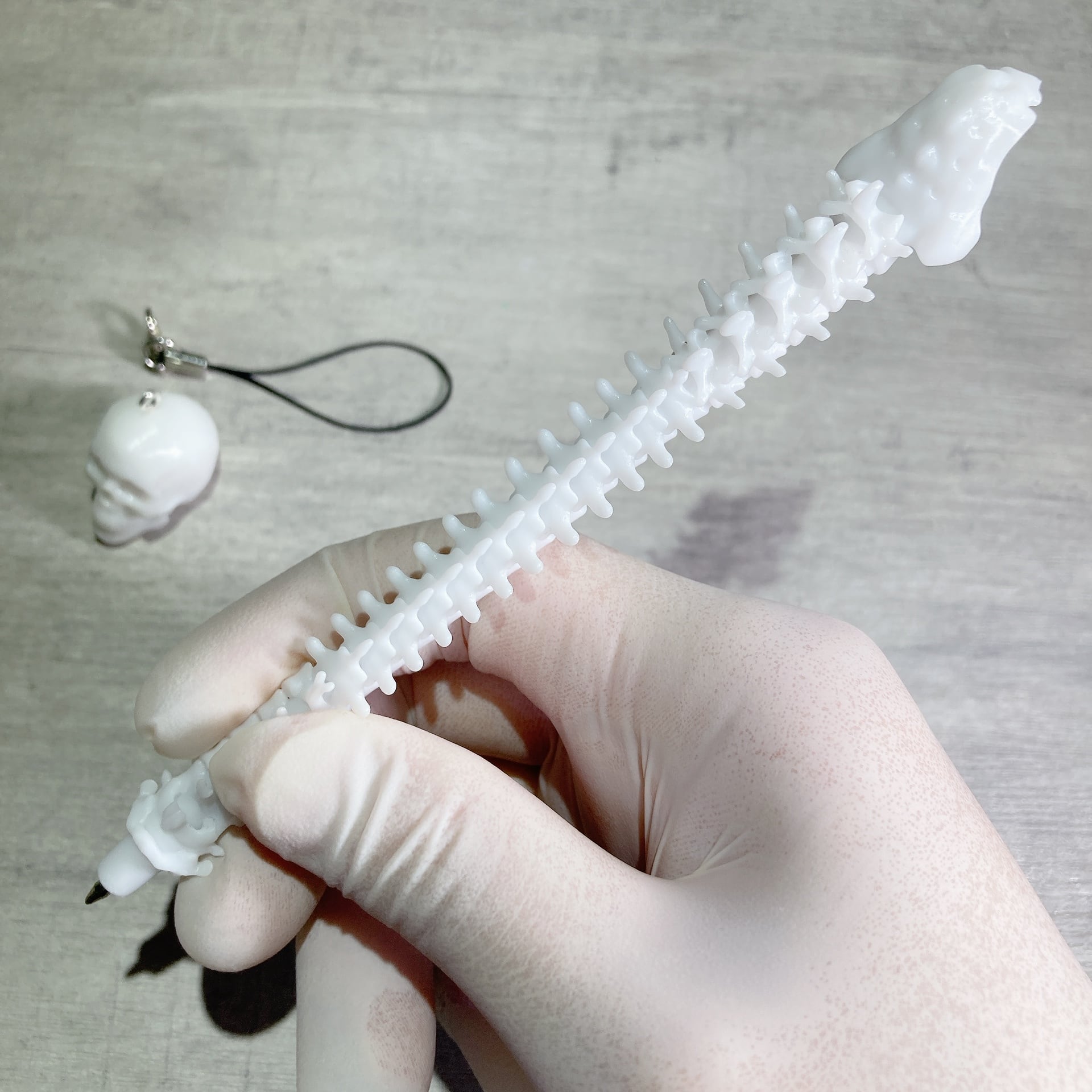 ※こちらの商品は頭蓋骨単品での提供になります。参考写真の脊椎ボールペンは別売りとなっていますのでご注意ください。
