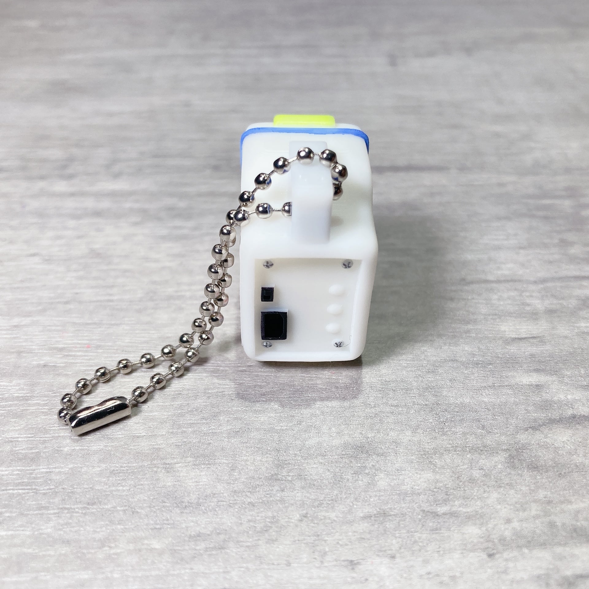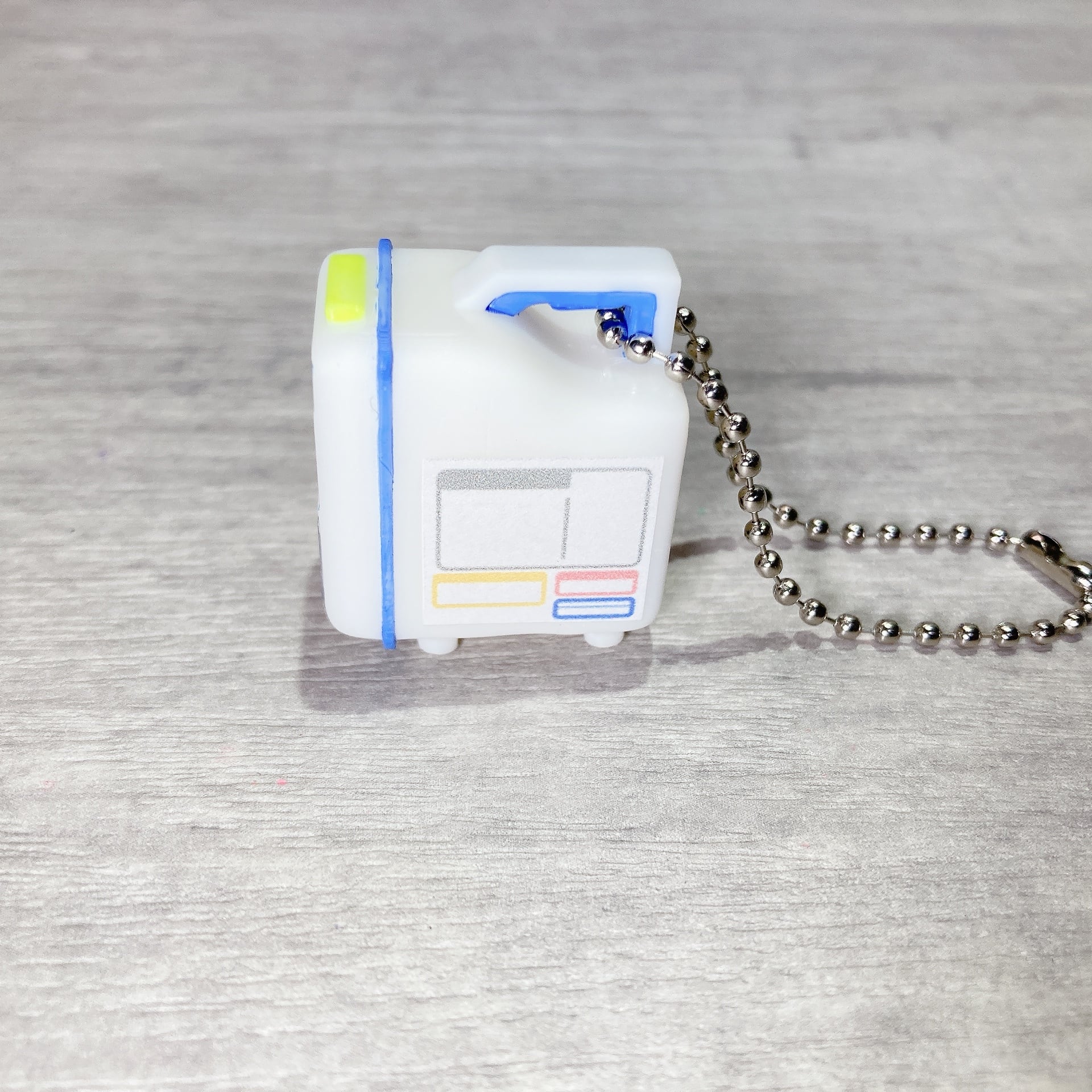 医療従事者として病院で働き始めると、おそらく1番初めに扱うME機器である輸液ポンプをミニチュアのキーホルダーにしてみました!特に一般病棟やICUで働く方にとって最も馴染み深い機器の一つではないでしょうか。こちらのキーホルダーは3Dプリンターで造形し、1つ1つ筆を使いせっせと塗装しました。正面の表示部・操作部などはデカールを自作し貼り付けることで輸液ポンプらしい見た目を整えています。輸液ポンプに愛着のある方、是非手に取って眺めて見て下さい♪